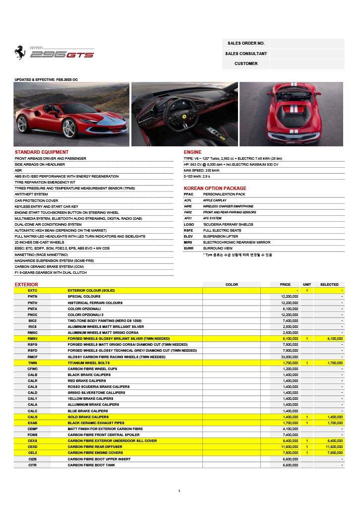 2024년 5월식 페라리 296 GTS 3.0 PHEV 모델을 판매합니다.
