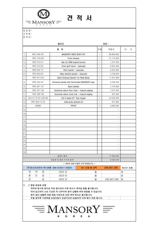 ▶MANSORY 견 적 서