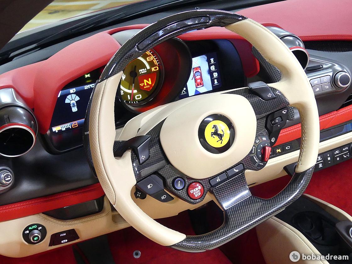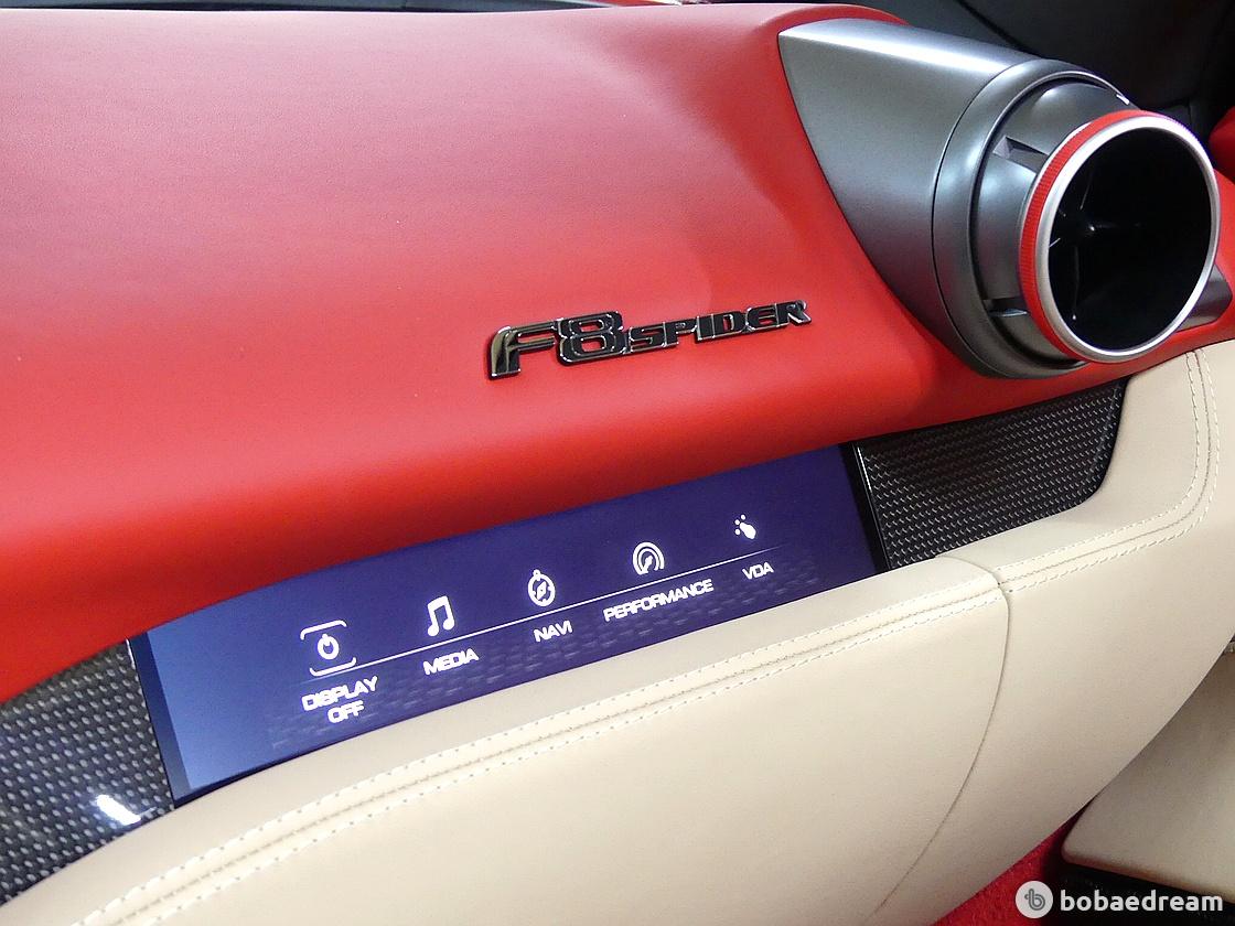 F8 스파이더는 F1 경주차처럼 모든 컨트롤 기능이 신형 스티어링 휠에 탑재된다. 가벼워진 차량을 부각하기