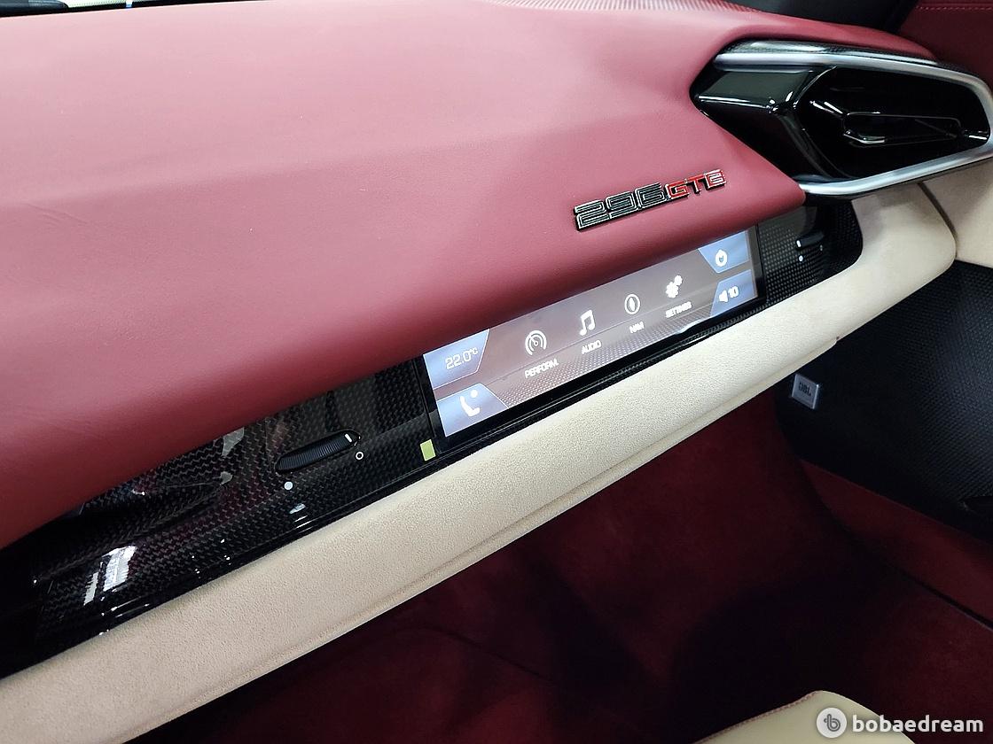 실내 인테리어는 SF90 스트라달레를 통해 선보인 풀 디지털 인터페이스를 토대로 디자인됐다. 인테리어