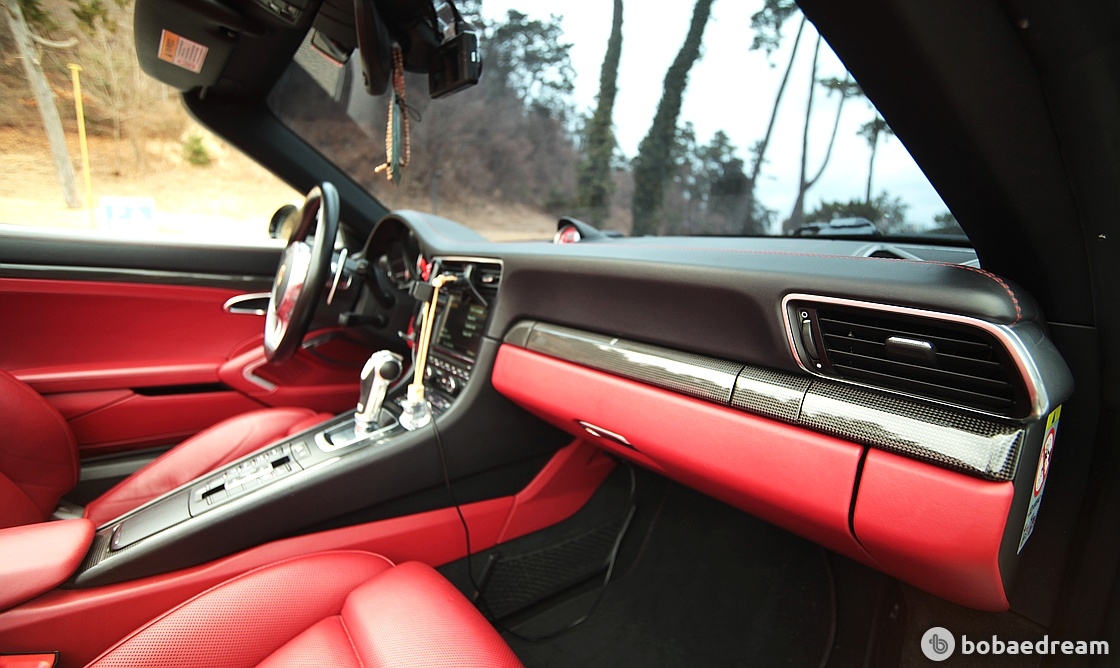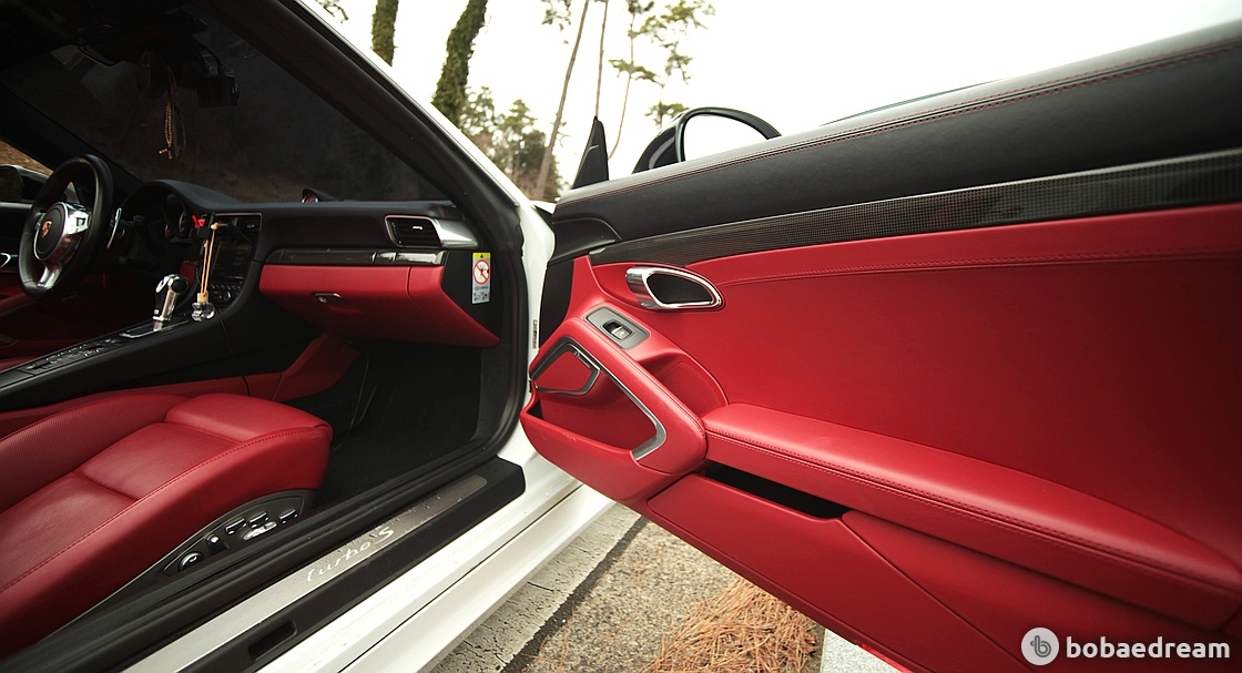 3.8리터 수평대향 6기통 바이터보 엔진을 장착한 포르쉐 터보는 새롭게 디자인 된 흡기구와 개선된