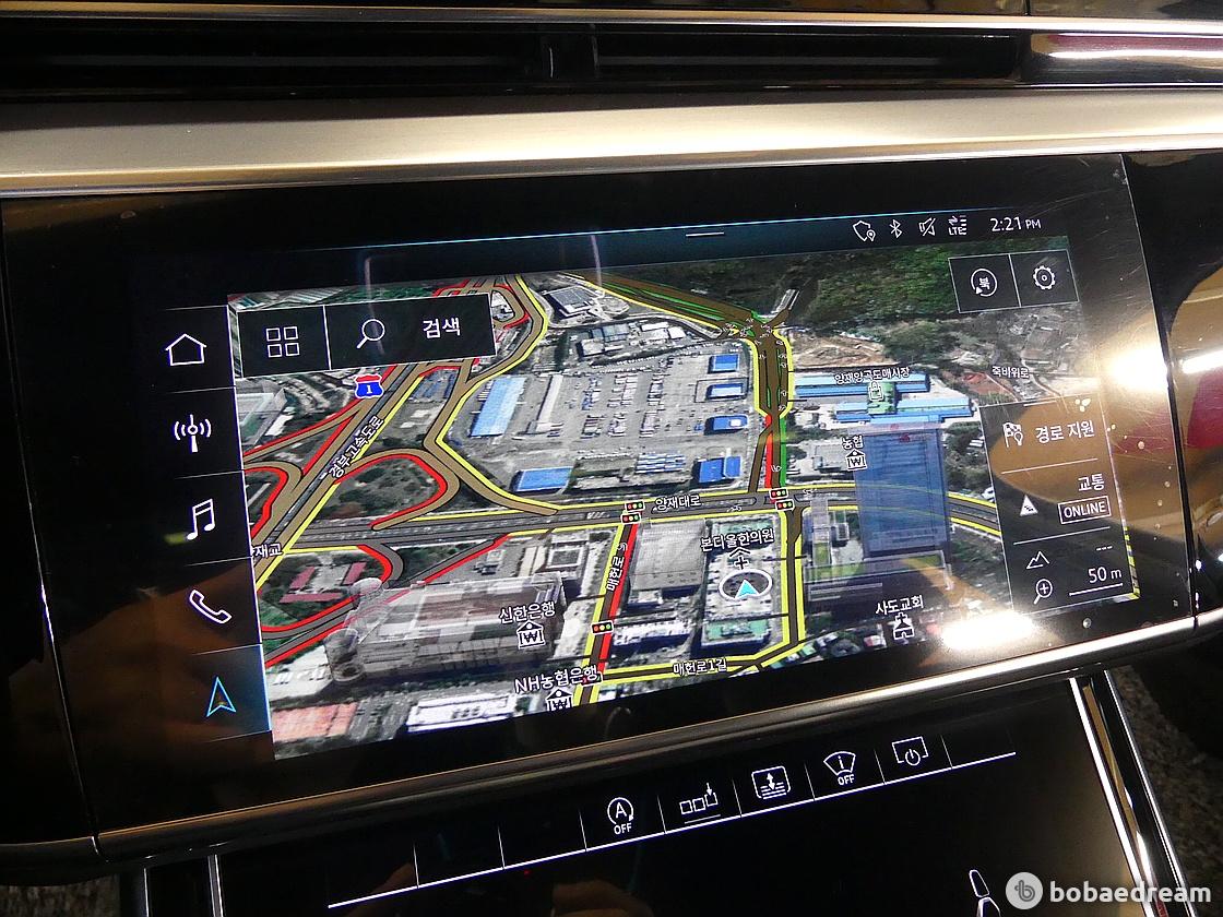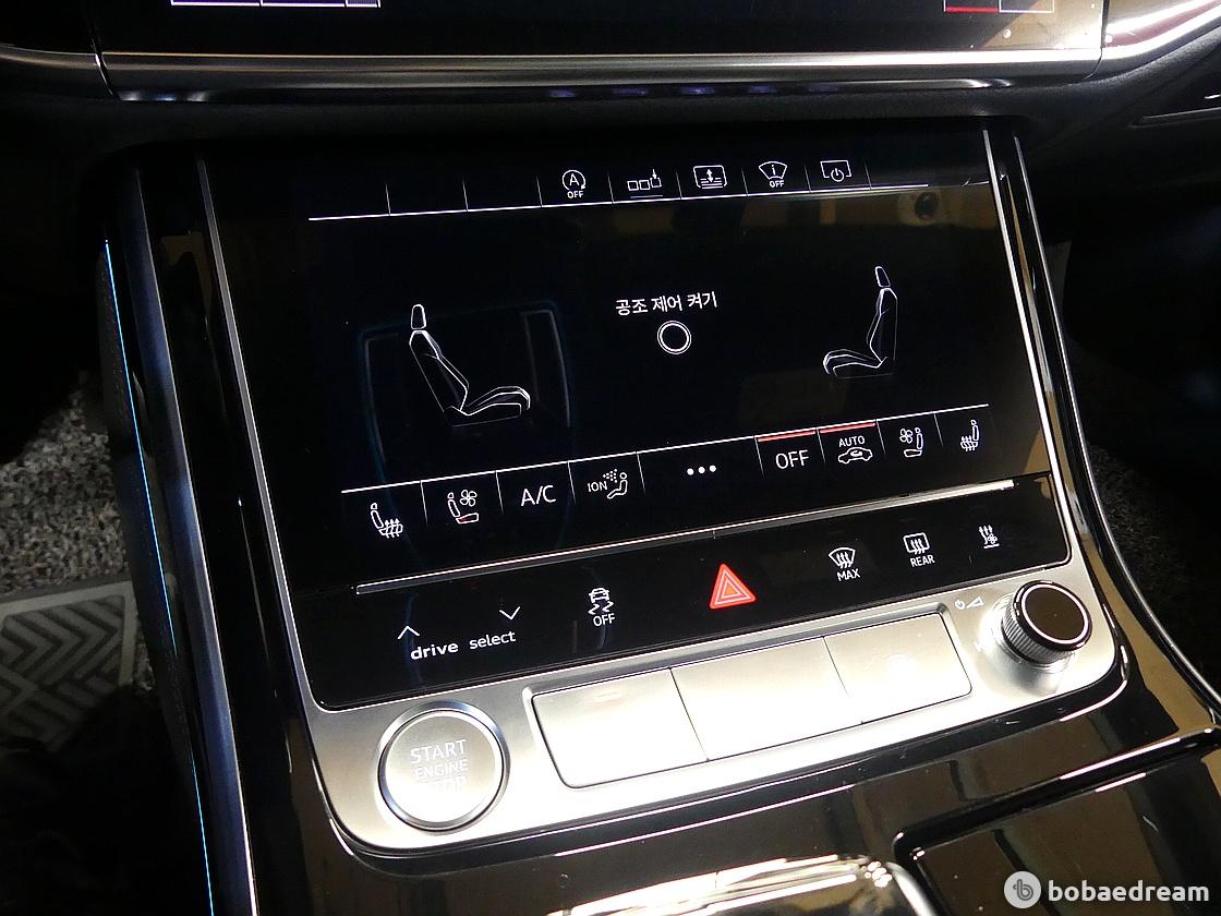 인치 스크린은 MMI 터치로 제어한다. 에어컨 송풍구는 사용 여부에 따라 자동 개폐하며, 안드로이드 스마트