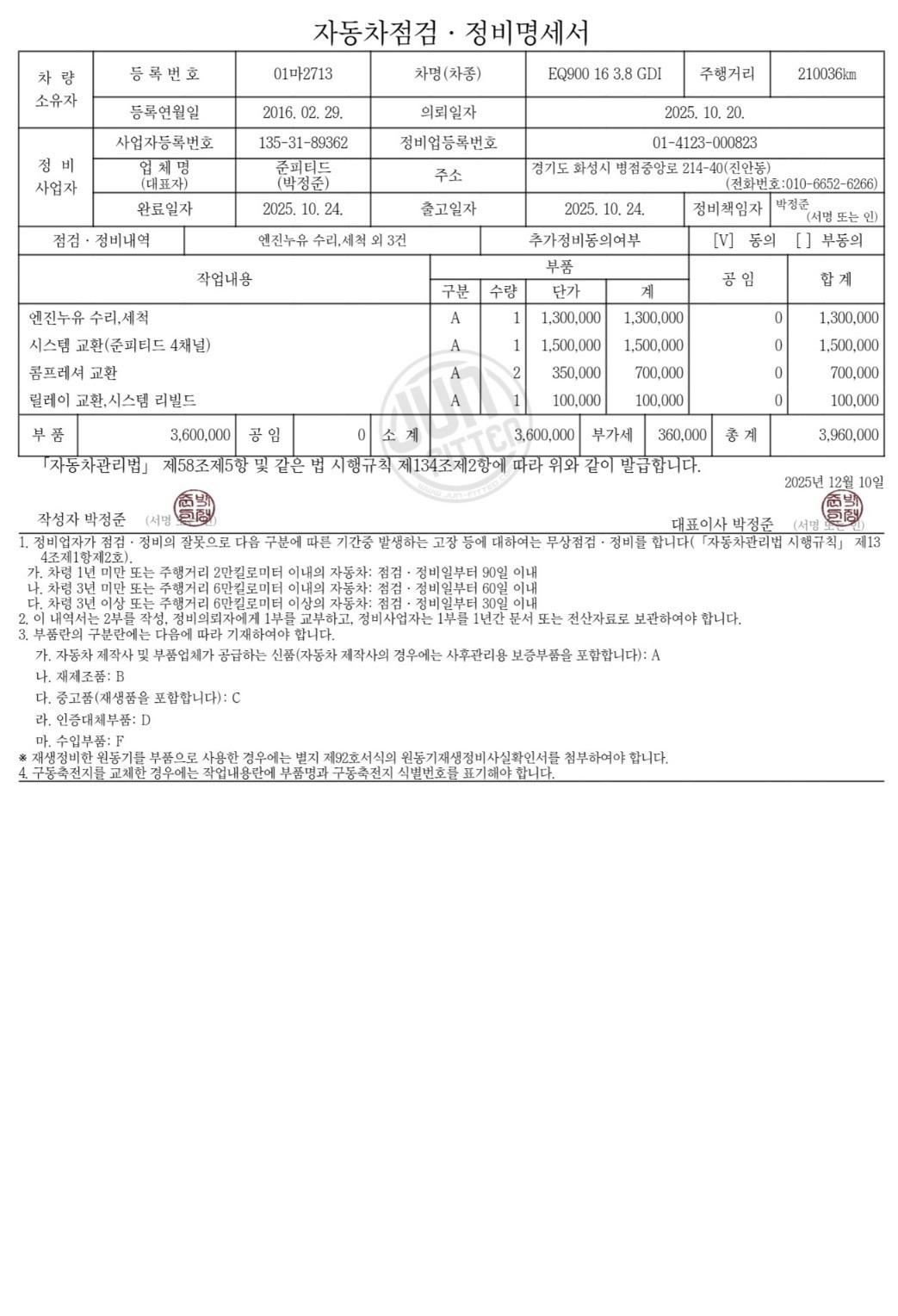 ▶자동차 점검·정비명세서